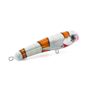 El popper de buceo Bubble Dive 122P es una joya vibrante con una acción natural hipererrática, ideal para la pesca de róbalos o pargos en zonas bajas o riberas de manglares. Un potente sorbo al pop, seguido de una inmersión profunda, deja una estela de humo abrasador que promete acción. Su baja resistencia a la recuperación lo convierte en una delicia tanto para principiantes como para expertos. Fabricado artesanalmente con un alambre pasante de acero inoxidable, este señuelo ofrece lances divertidos y precisos.