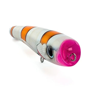 Action The Bubble Dive Diving Popper is naturally unstable. It imparts a satisfying pop and splash, after which it dives below the surface, leaving a thick bubble trail in its wake with an erratic and frantic swim action. |