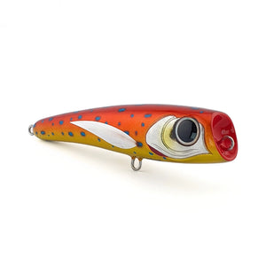 | Action The Dakochan Diving Popper’s exceptionally balanced design affords it a beautiful, natural swim action with a loud pop and slurp on the pull. |