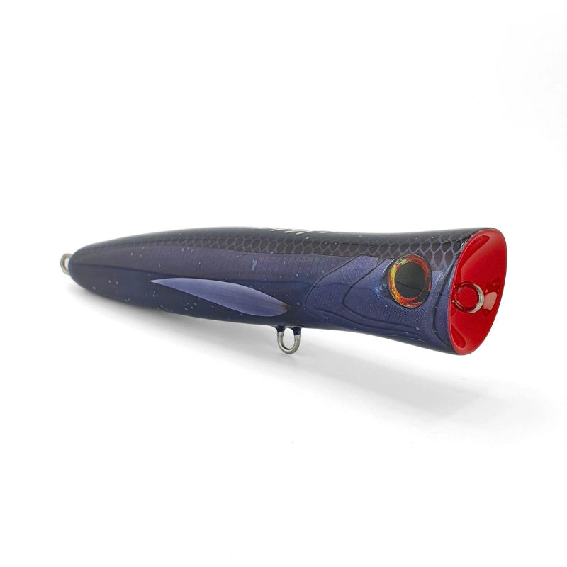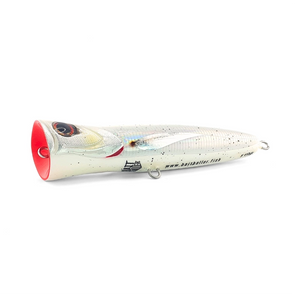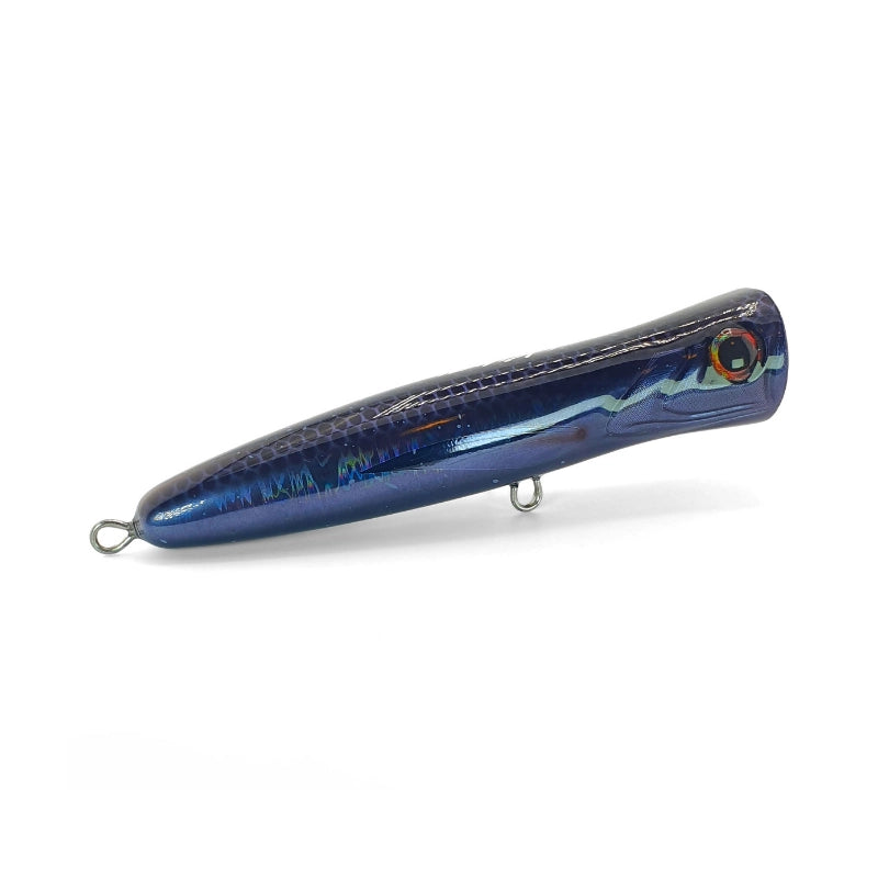 El popper de superficie Cosmo 180P, pariente cercano del 175P, es una joya de alta resistencia diseñada para capturar grandes pelágicos. Su audaz cara ahuecada desata un potente pop y salpicadura, atrayendo atunes, mahi-mahi y otras grandes especies de aguas profundas. Con un alambre pasante de acero inoxidable, este señuelo artesanal se enfrenta a los adversarios más duros del océano. Diseñado en tamaño grande y resistente para pescadores que buscan una ligera ventaja en tamaño para una acción épica en la superficie.