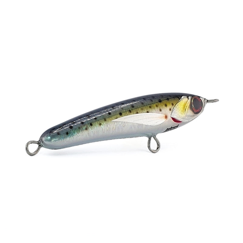 Action The Kiba Series Sinking Stickbait is a slower-sinking stickbait, lending itself well to slower retrieves and twitch-pause techniques. It is no slouch on faster retrieves, where it exhibits a wider, structured swim action. |