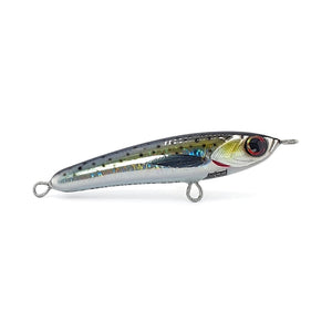 El stickbait de hundimiento Kiba Serie 125S es un señuelo versátil para pesca costera y en roca y surf, ideal para especies como grandes corvinas rojas, jureles y sábalos, con un lance preciso. Su forma aerodinámica ofrece una natación natural: tranquila y amplia o muy errática con recuperaciones variadas. Fabricado artesanalmente con un alambre pasante de acero inoxidable, es un señuelo versátil para todo el día, ideal para surfs irregulares o aguas tranquilas. Imprescindible para pescadores profesionales, este señuelo versátil ofrece una acción trepidante sin necesidad de cambiar de señuelo constantemente.