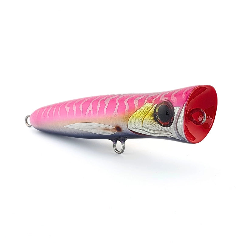 El popper de superficie Cosmo 145P es una bestia robusta diseñada para presas más grandes, perfecta para lances largos desde costas rocosas o playas hasta aguas más agitadas. Su nítida acústica y su gruesa estela de burbujas se abren paso entre la corriente, captando la atención de depredadores como el jurel de cola amarilla, el sábalo grande y el jurel. Con un robusto alambre pasante de acero inoxidable, este señuelo artesanal ofrece una durabilidad implacable. Un paso por encima de su hermano menor, equilibra potencia y presencia para los pescadores que buscan la acción épica de superficie en cualquier costa.