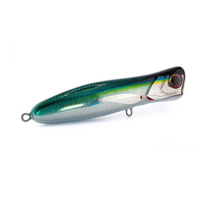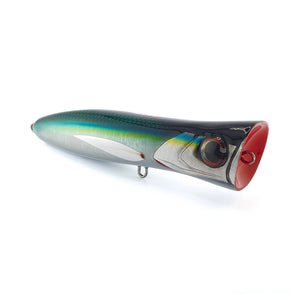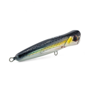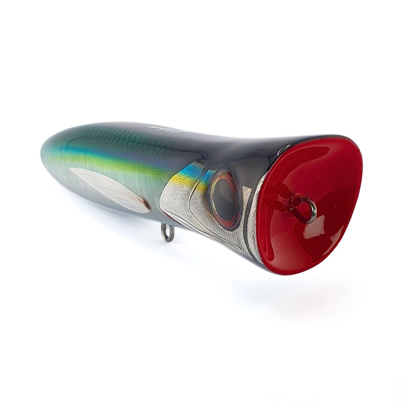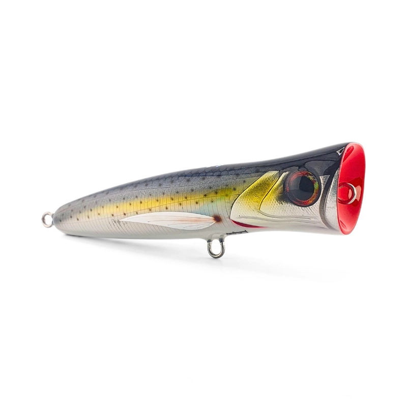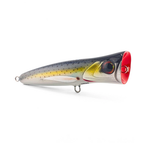 The Cosmo 165P surface popper is built for big game, this lure can be found in both the Rock & Surf and Offshore collections. Its oversized cup delivers a thunderous pop and thick bubble trail, triggering predators like giant trevally, big king mackerel, and tuna. Fitted with a full stainless steel through-wire, this handcrafted lure ensures unrelenting durability. Ideal for chasing explosive topwater action from the side or out in the blue.