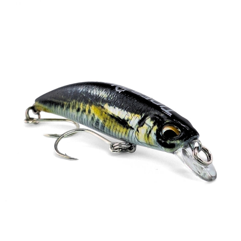 The Reef Runner | Ti Macro minnow, an anchovy clone, is a finesse angler’s dream, featuring Tides Lures’ patented Semi Livebait System. Its lifelike form and 3D holographic scales make it a sniper for striped bass, tarpon, snapper & grouper in coastal shallows or deeper inshore waters. Pre-rigged with Mustard #14 inline singles, it’s built for rugged inshore conditions. Perfect for mangrove edges and estuaries, this lure delivers pulse-pounding hookups. Check rigging suggestions for tailored setups to boost your inshore game.
